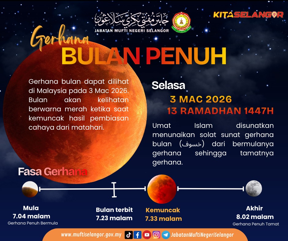 INFO FALAK : GERHANA BULAN PENUH , 3 MAC 2026 BERSAMAAN 13 RAMADHAN 1447H