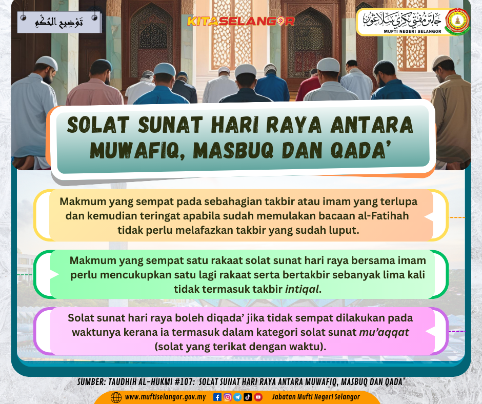 #107 Taudhih Al-Hukmi : Solat Sunat Hari Raya Antara Muwafiq, Masbuq dan Qada’